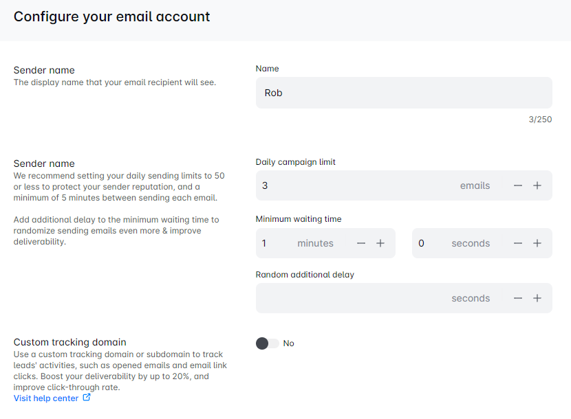 Here, you can change the sender's name, adjust campaign settings, set a custom tracking domain, update your signature, and even add BCC recipients. 🖊️