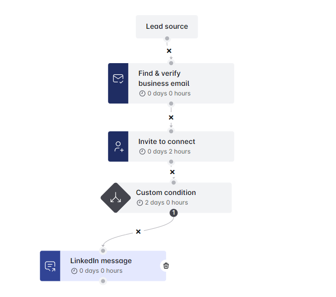 Leverage Custom Conditions in the HRS Ignite to optimize your campaigns and workflow. With up to five tailored outputs, you can handle leads based on connection status, email verification, and InMail options, creating seamless, efficient sequences. Start using Custom Conditions to elevate your campaigns and engage smarter! 🚀