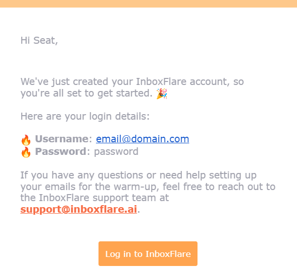 Now, check your email as we sent you credentials which you should use to access InboxFlare.